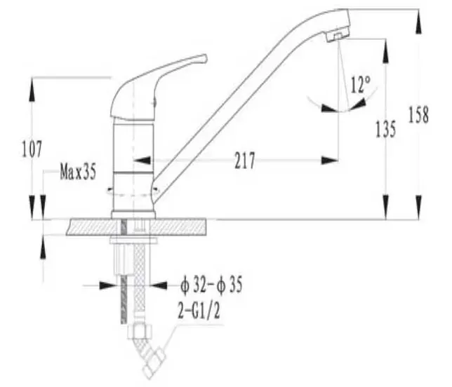• Высота смесителя: