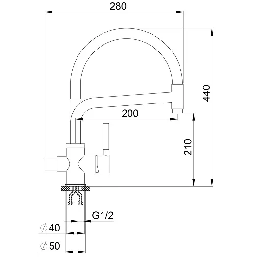 Смеситель для кухни. Цвет-хром. В комплект поставки входит: смеситель, гибкая подводка, комплект креплений, переходник для подключения фильтра с питьевой водой