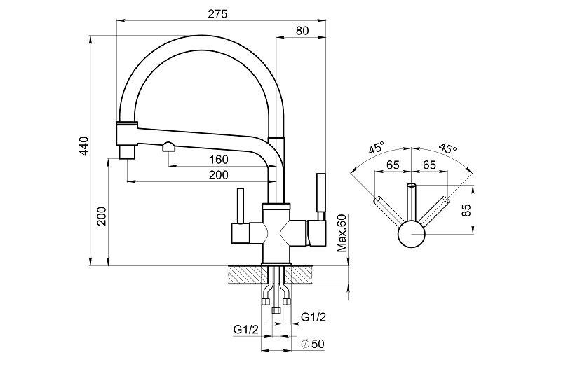 Смеситель для кухни Granula 0083, АЛЮМИНИУМ Алюминиум