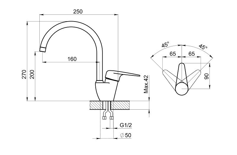 Смеситель для кухни Granula 1024, ХРОМ хром