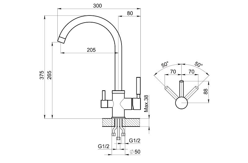 • Высота смесителя: