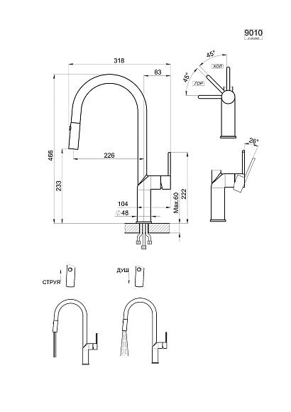 • Выдвижной излив: