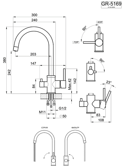 • Высота смесителя: