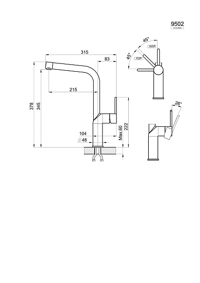 Высота смесителя:37.8