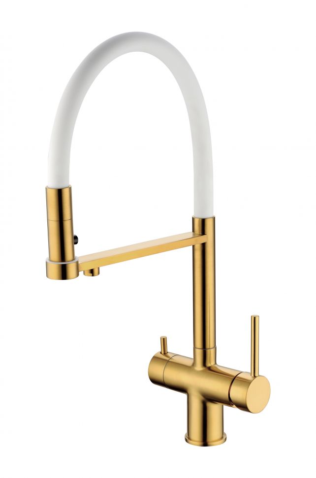 Смеситель для кухни Grocenberg GB4095 с гибким изливом золотой брашированный купить