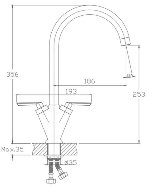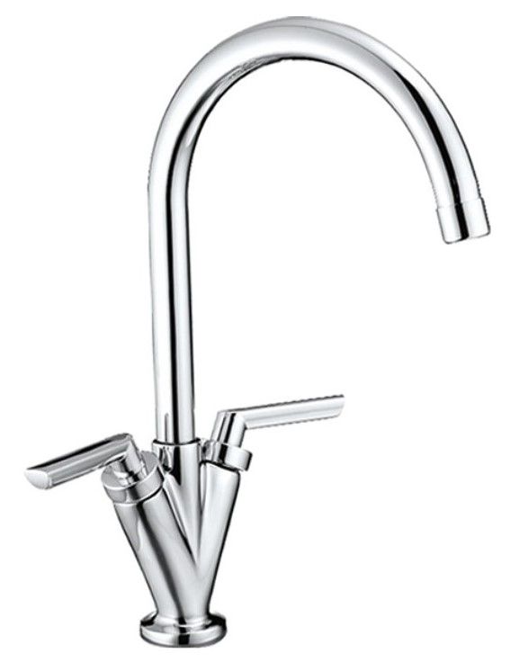 Смеситель для кухни бренда Haiba.Изготовлен из латуни.Укомплектован аэратором.Гибкая подводка 40 см.С поворотным изливом.