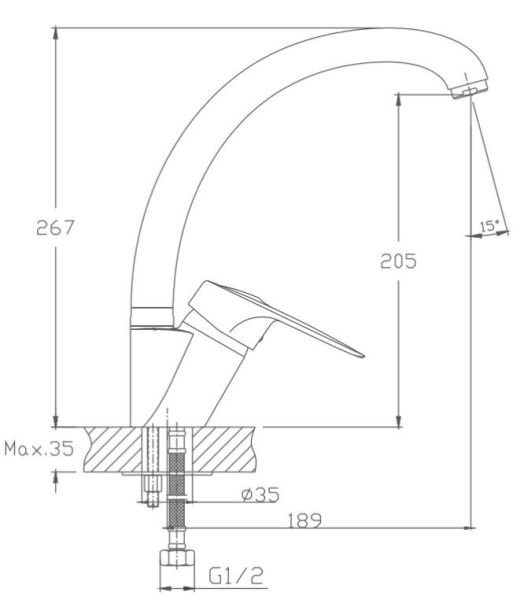Смеситель для кухни бренда Haiba.Изготовлен из латуни.Картридж 35 мм.Укомплектован аэратором.Гибкая подводка 40 см.С поворотным изливом.