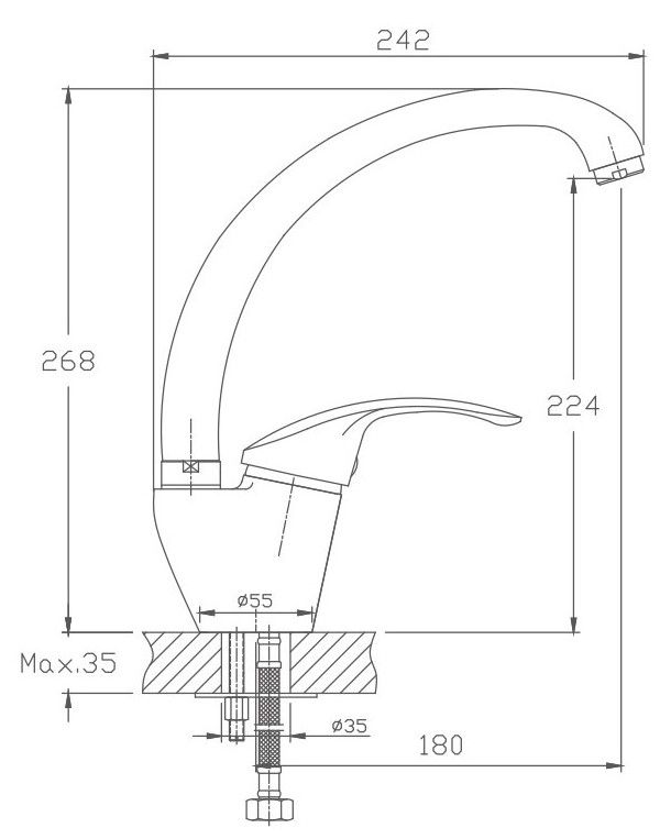 Смеситель для кухни бренда Haiba.Изготовлен из латуни.Картридж 40 мм.Укомплектован аэратором.Гибкая подводка 40 см.С поворотным изливом.