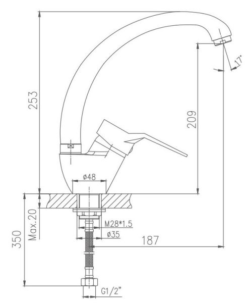 • Высота смесителя: