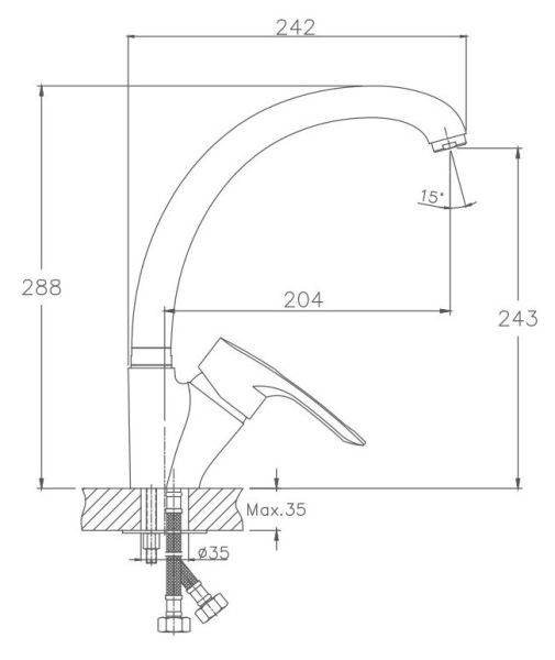Смеситель для кухни бренда Haiba.Изготовлен из латуни.Картридж 40 мм.Укомплектован аэратором.Гибкая подводка 40 см.С поворотным изливом.