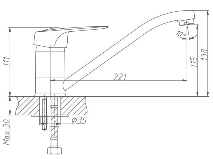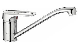 Смеситель для кухни бренда Haiba.Изготовлен из латуни.Картридж 40 мм.Укомплектован аэратором.Гибкая подводка 40 см.С поворотным изливом.