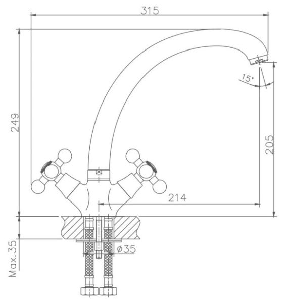 Смеситель для кухни бренда Haiba.Изготовлен из латуни.Укомплектован аэратором.Гибкая подводка 40 см.С поворотным изливом.