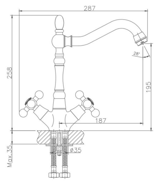 • Высота смесителя: