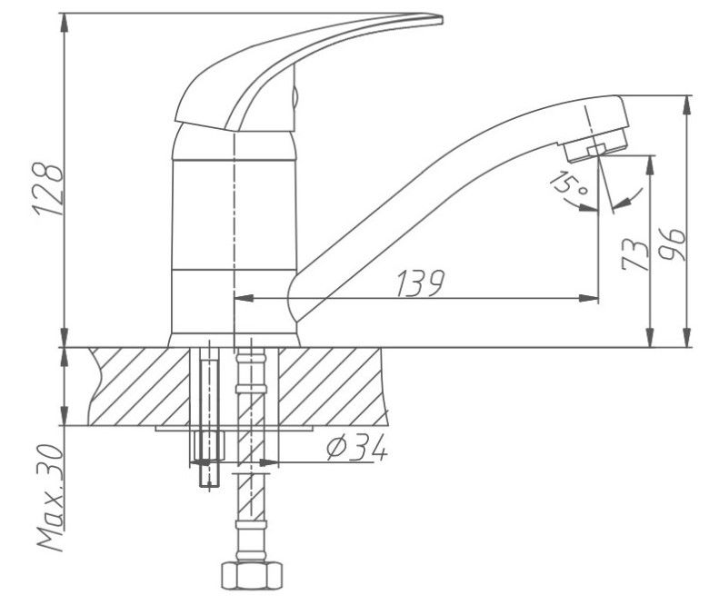 Смеситель для кухни бренда Haiba.Изготовлен из латуни.Картридж 40 мм.Укомплектован аэратором.Гибкая подводка 40 см.С поворотным изливом.