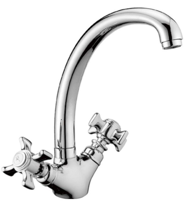Смеситель для кухни бренда Haiba.Изготовлен из латуни.Укомплектован аэратором.Гибкая подводка 40 см.С поворотным изливом.