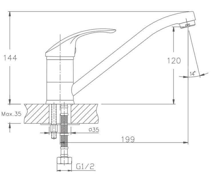 Смеситель для кухни бренда Haiba.Изготовлен из латуни.Картридж 35 мм.Укомплектован аэратором.Гибкая подводка 40 см.С поворотным изливом.