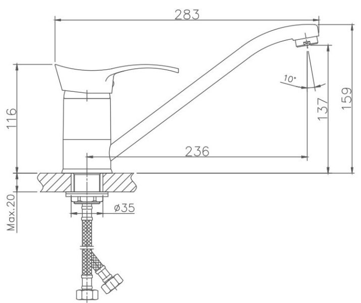 • Высота смесителя:
