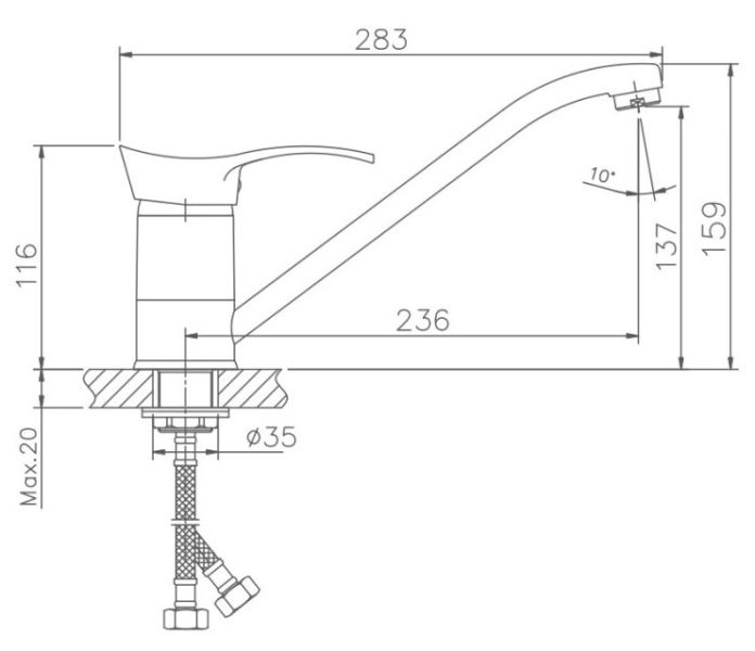 • Высота смесителя: