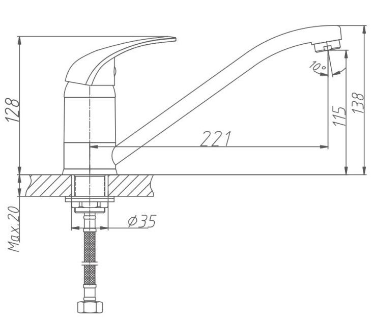 Смеситель для кухни бренда Haiba.Изготовлен из латуни.Картридж 40 мм.Укомплектован аэратором.Гибкая подводка 40 см.С поворотным изливом.