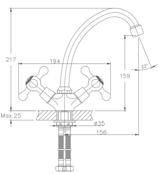 • Высота смесителя: