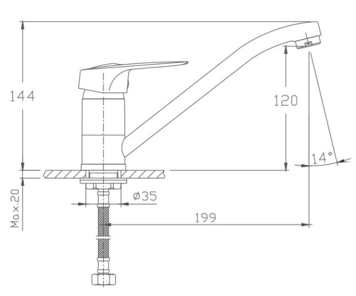 Смеситель для кухни бренда Haiba.Изготовлен из латуни.Картридж 35 мм.Укомплектован аэратором.Гибкая подводка 40 см.С поворотным изливом.