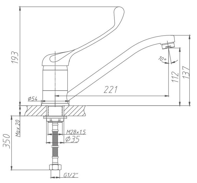 • Высота смесителя: