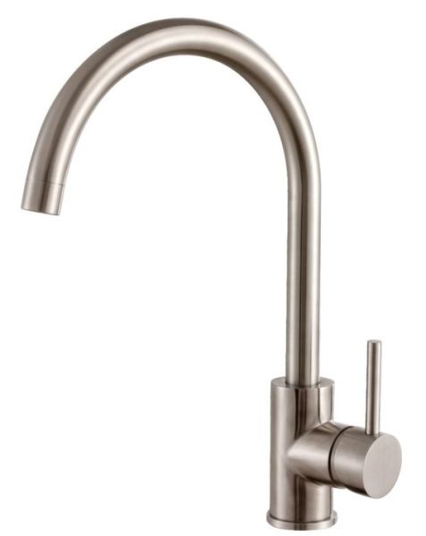Смеситель для кухни бренда Haiba.Изготовлен из нержавеющей стали.Картридж 35 мм.Укомплектован аэратором.Гибкая подводка 40 см.С поворотным изливом.