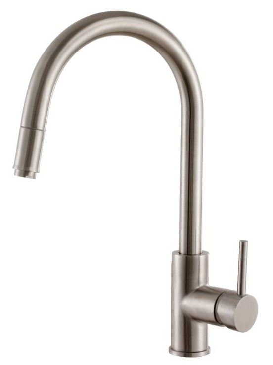 Смеситель для кухни бренда Haiba.Изготовлен из нержавеющей стали.Картридж 35 мм.Укомплектован аэратором.Гибкая подводка 40 см. С поворотным изливом.