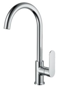 Смеситель для кухни бренда Haiba.Изготовлен из латуни.Картридж 30 мм.Укомплектован аэратором.Гибкая подводка 40 см.С поворотным изливом.