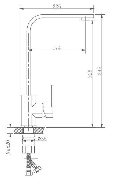 • Высота смесителя: