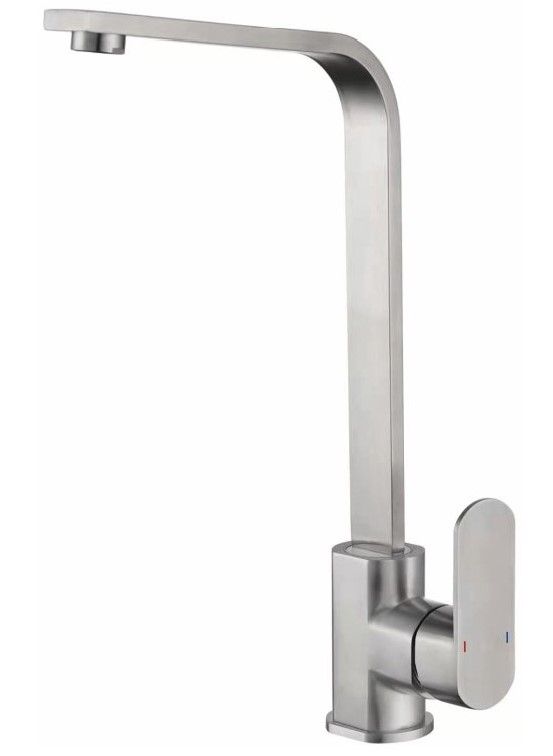 Смеситель для кухни бренда Haiba.Изготовлен из нержавеющей стали.Картридж 35 мм.Укомплектован аэратором.Гибкая подводка 40 см.С поворотным изливом