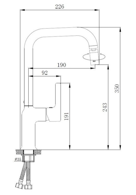 Смеситель для кухни бренда Haiba.Изготовлен из латуни.Укомплектован аэратором.Гибкая подводка 40 см.С поворотным изливом.