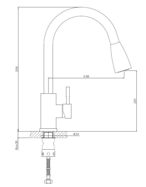 Смеситель для кухни бренда Haiba.Изготовлен из нержавеющей стали.Укомплектован аэратором.Гибкая подводка 40 см.С поворотным изливом.