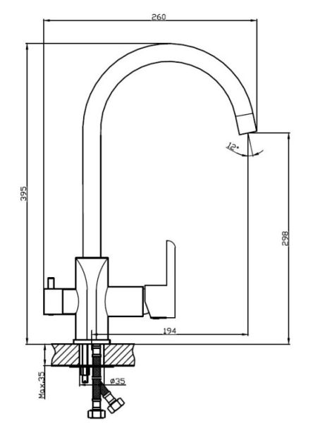 Смеситель для кухни бренда Haiba.Изготовлен из латуни.Укомплектован аэратором.Гибкая подводка 40 см.С поворотным изливом.