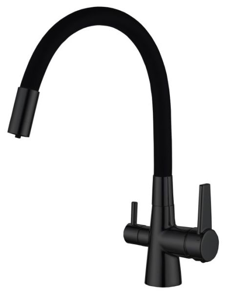 Смеситель для кухни Haiba HB76859-7 с подключением фильтра питьевой воды чёрный матовый