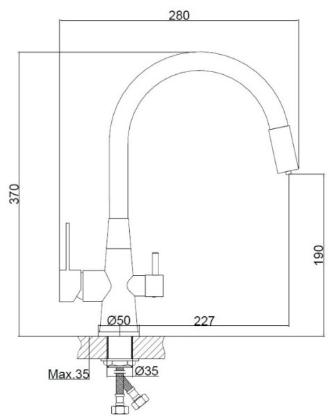 Смеситель для кухни бренда Haiba.Изготовлен из латуни.Укомплектован аэратором.Гибкая подводка 40 см.С поворотным изливом.