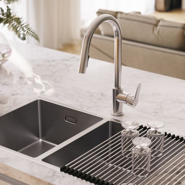 Смеситель Cuba – улучшенный функционал и хорошо узнаваемый дизайн. Излив смесителя выдвигается на 45 см, что позволяет направлять струю воды в нужную точку раковины для поддержания безупречной чистоты.