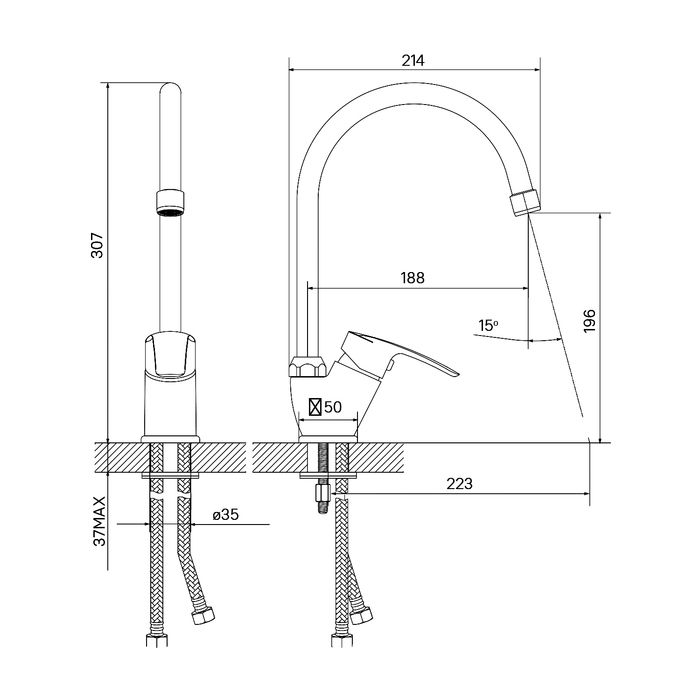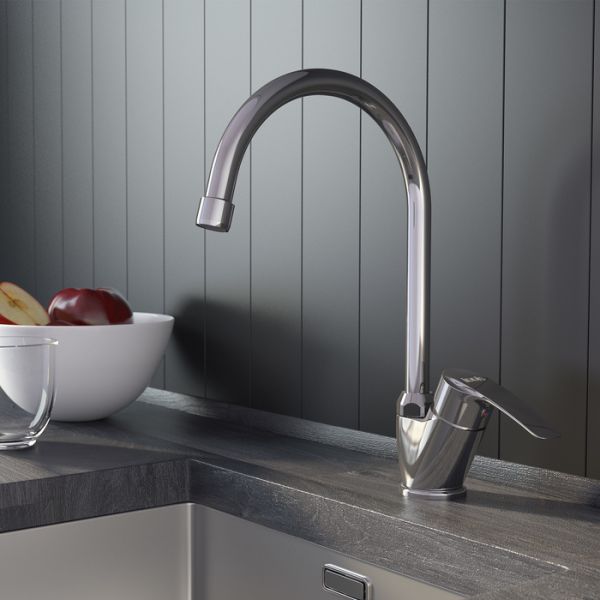Высокий смеситель (высота излива – 307 мм) для кухни Ray имеет универсальный дизайн и подойдет для различных вариантов интерьерных решений. Благодаря поворотному изливу пользоваться им удобно на любой кухонной мойке. Может быть установлен как на мойку, так и на столешницу.