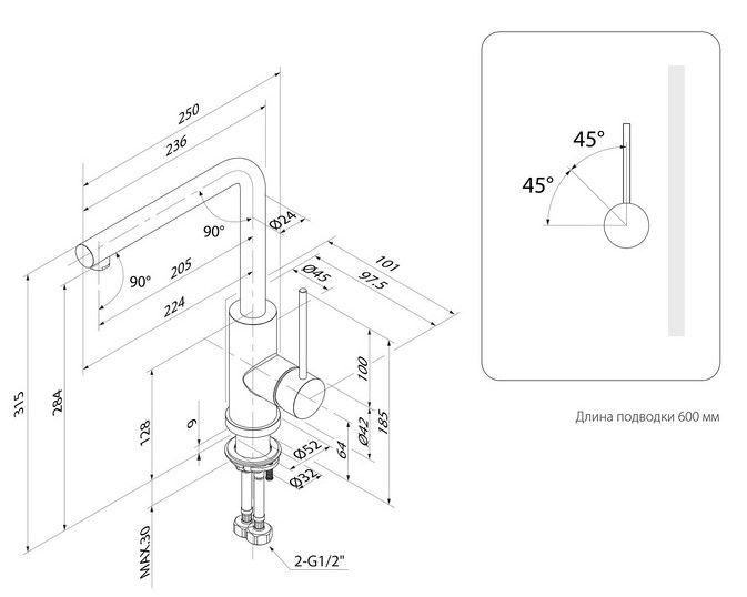 • Высота смесителя: