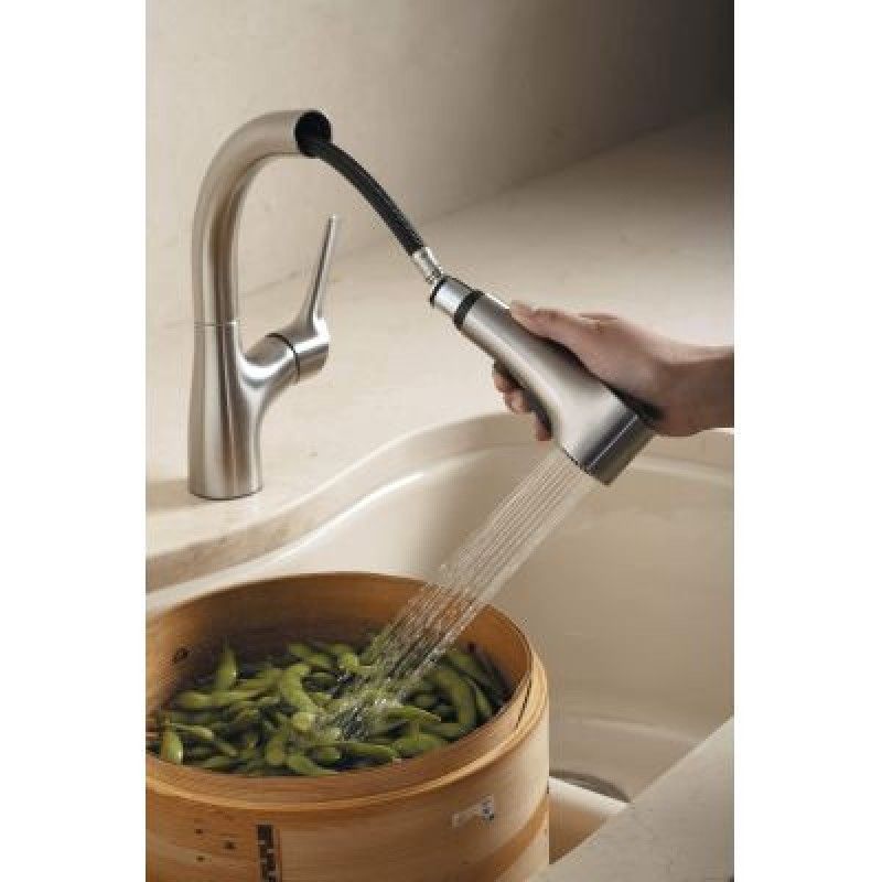 Смеситель для кухни Jacob Delafon ELATE E13963-CP.Рычаг переключения расположен сбоку от раковины для лучшего доступаВысокий Смеситель для кухни Jacob Delafon ELATE E13963-CP. монтируемый в одно отверстие, однорычажный, с выдвижным, поворотным, трехрежимным изливом.