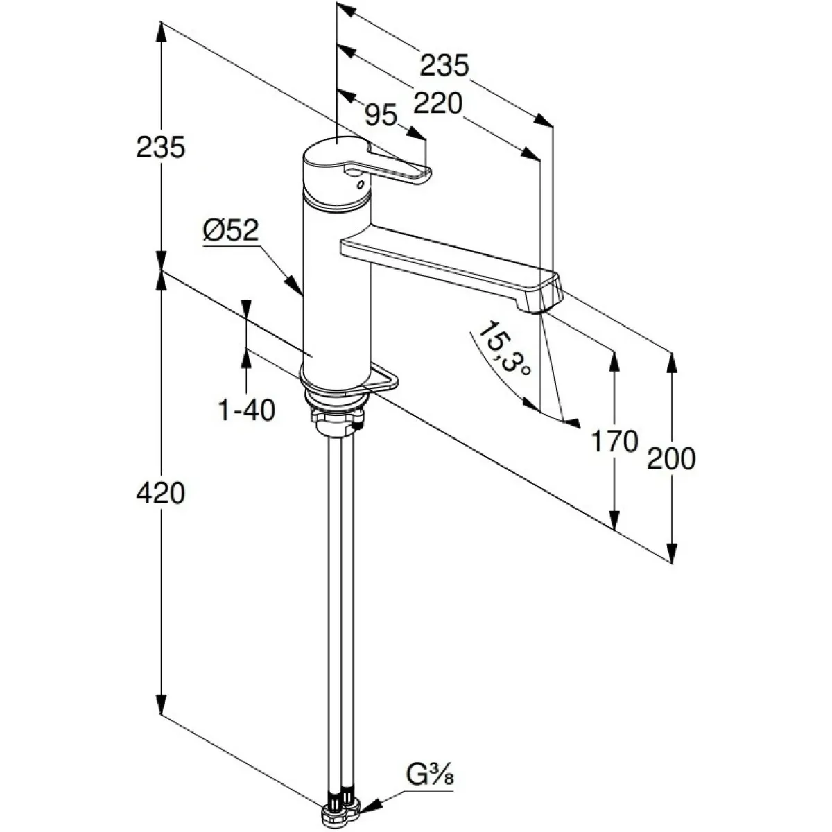 • Длина излива: 22 см