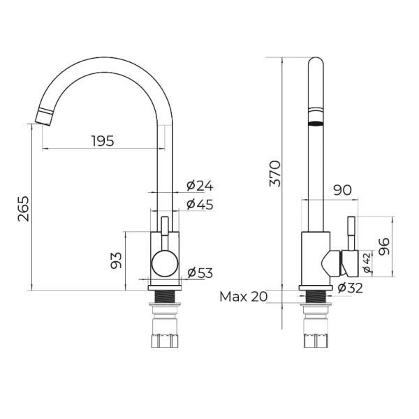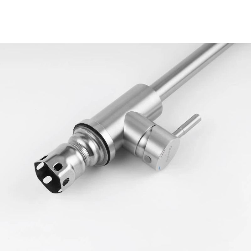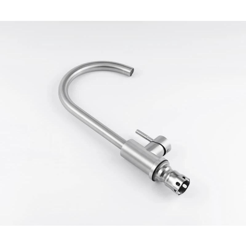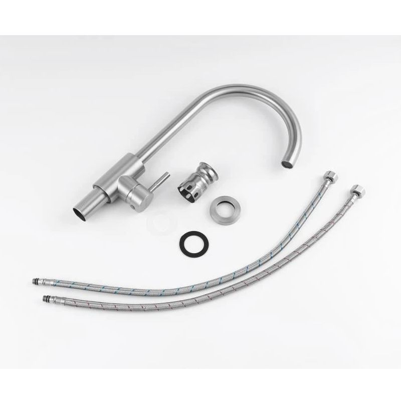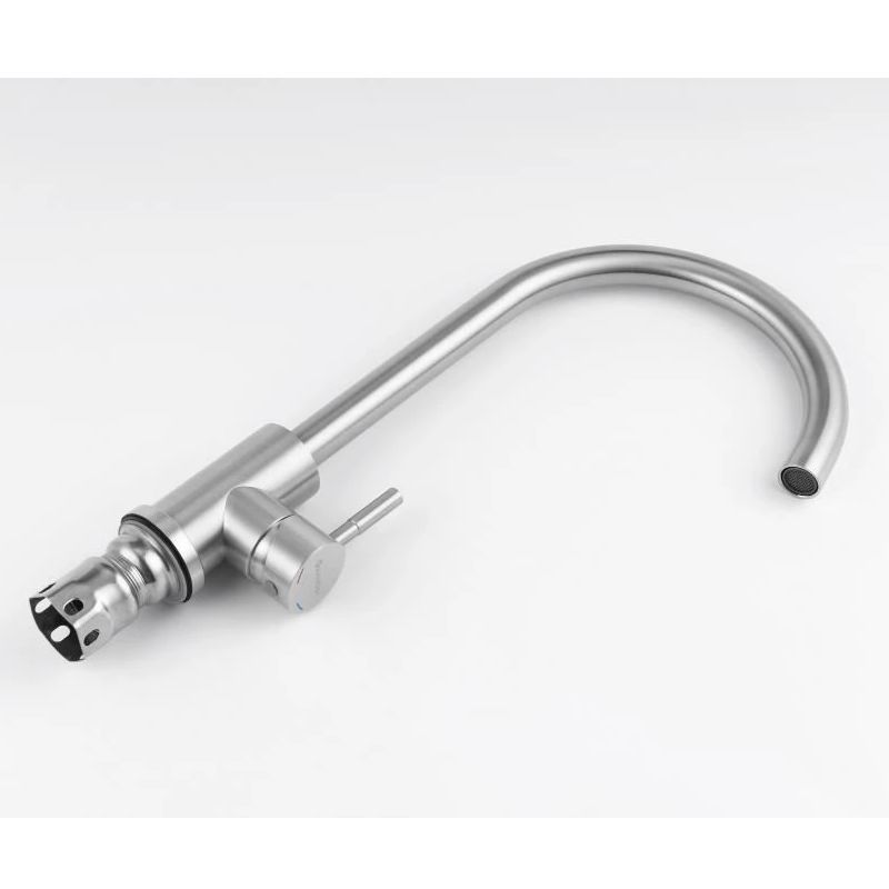 Матовая стальная поверхность и прочный корпус из нержавеющей стали SUS 304 гарантируют долговечность и стиль. Смеситель для кухни Knotlor STREAMLINE SS-01 - это идеальное сочетание стиля, функциональности и надежности. Его хромовый цвет и поворотный излив гармонично впишутся в интерьер любой кухни. Материал изготовления - высококачественная нержавеющая сталь - гарантирует прочность и долговечность смесителя. Благодаря высокому корпусу, смеситель удобен в использовании и прост в уходе. Высота крана для кухни Knotlor SS-01 позволяет легко наполнять большие кастрюли, высокие вазы, а также мыть посуду при большой заполненности мойки. Рычажное управление с керамическим картриджем обеспечивает плавное и точное регулирование температуры и напора воды. Излив этого кухонного смесителя оборудован аэратором, который помогает в экономии воды. Внутри аэратора воздух смешивается с водой, что образует насыщенную пузырьками струю, которая рассеивается на множество мелких потоков. Это делает струю более мягкой и объёмной, снижает разбрызгивание воды. Обновите вашу кухню со смесителем для кухни Knotlor STREAMLINE SS-01!