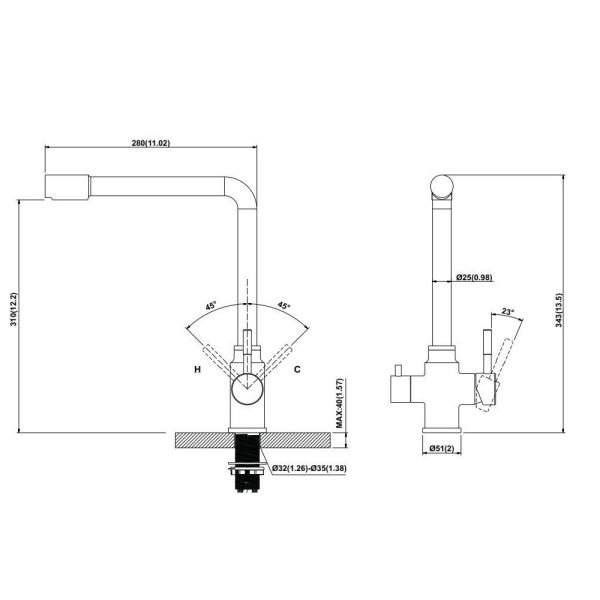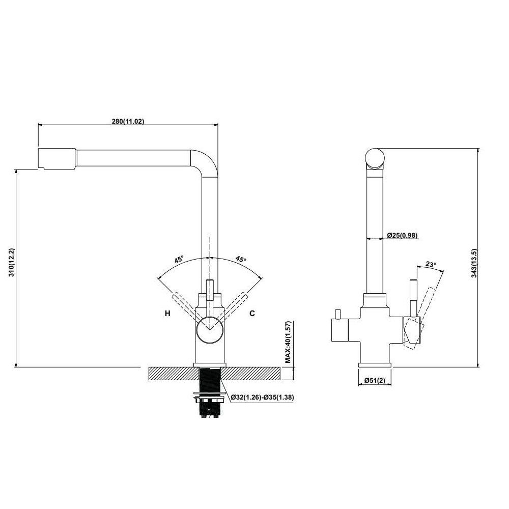 • Высота смесителя: