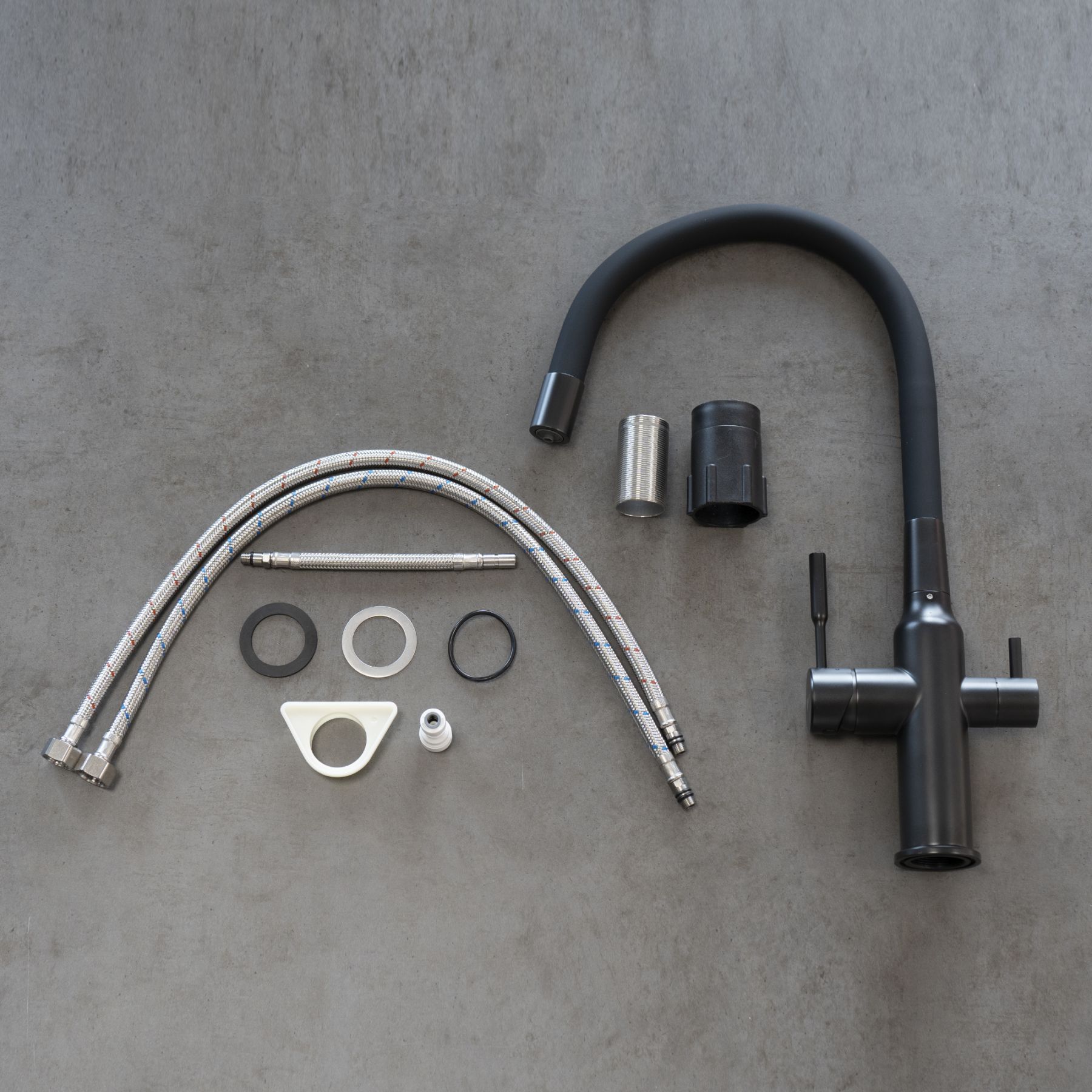 Смеситель для кухни Lemark Expert LM5083BL-Black с подключением к фильтру с питьевой водой чёрный купить