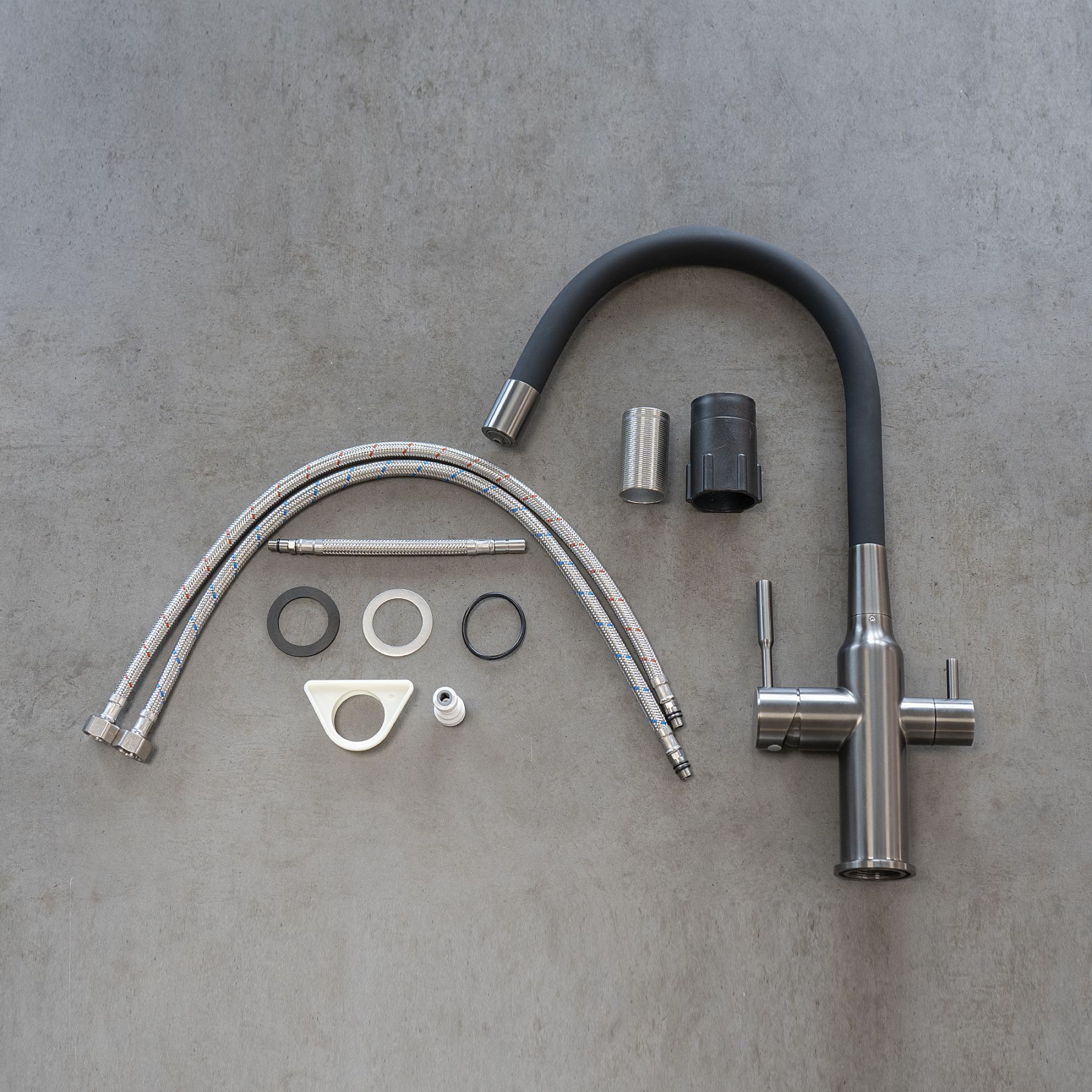 Смеситель для кухни Lemark Expert LM5083GMN-Black с подключением к фильтру с питьевой водой чёрный/графит