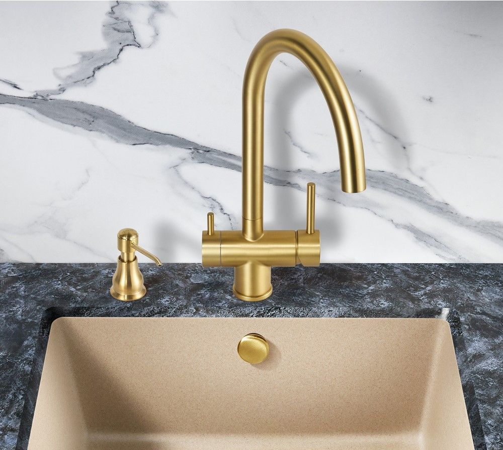 Смеситель для кухни Milacio Ultra MCU.554.GD под фильтр с краном для питьевой воды брашированное золото купить