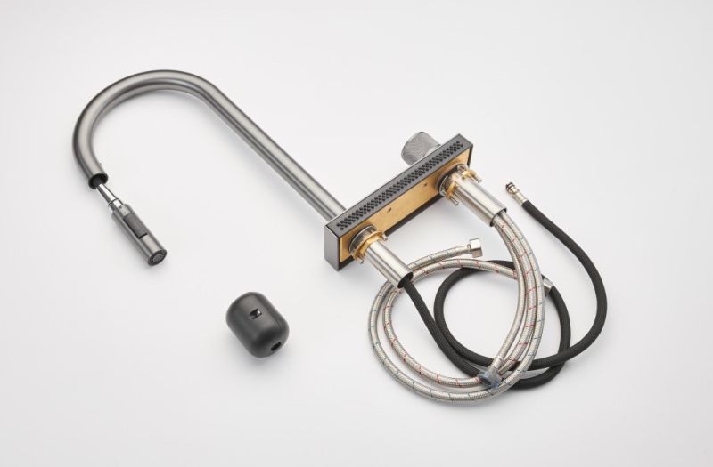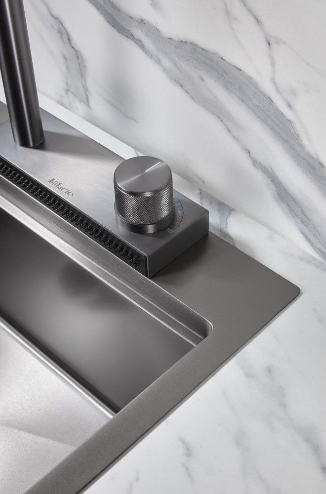 Смеситель для кухни с вытяжной лейкой и каскадным душем Milacio Ultra ( MCU.556.GM ) сталь воронёная