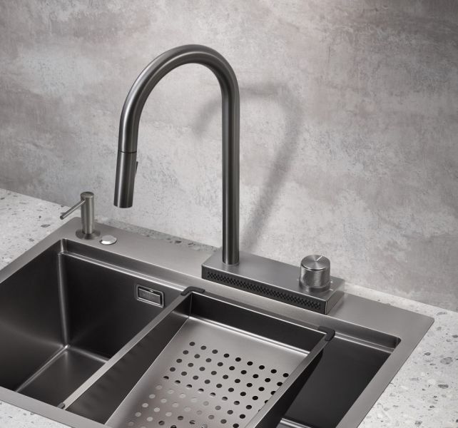 Смеситель для кухни Milacio Ultra MCU.556.GM с вытяжной лейкой и каскадным душем воронёная сталь купить