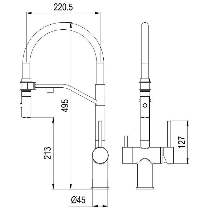 Смеситель для кухни Milacio Ultra MCU.557.TB с подключением к фильтру и гибким изливом Total Black купить