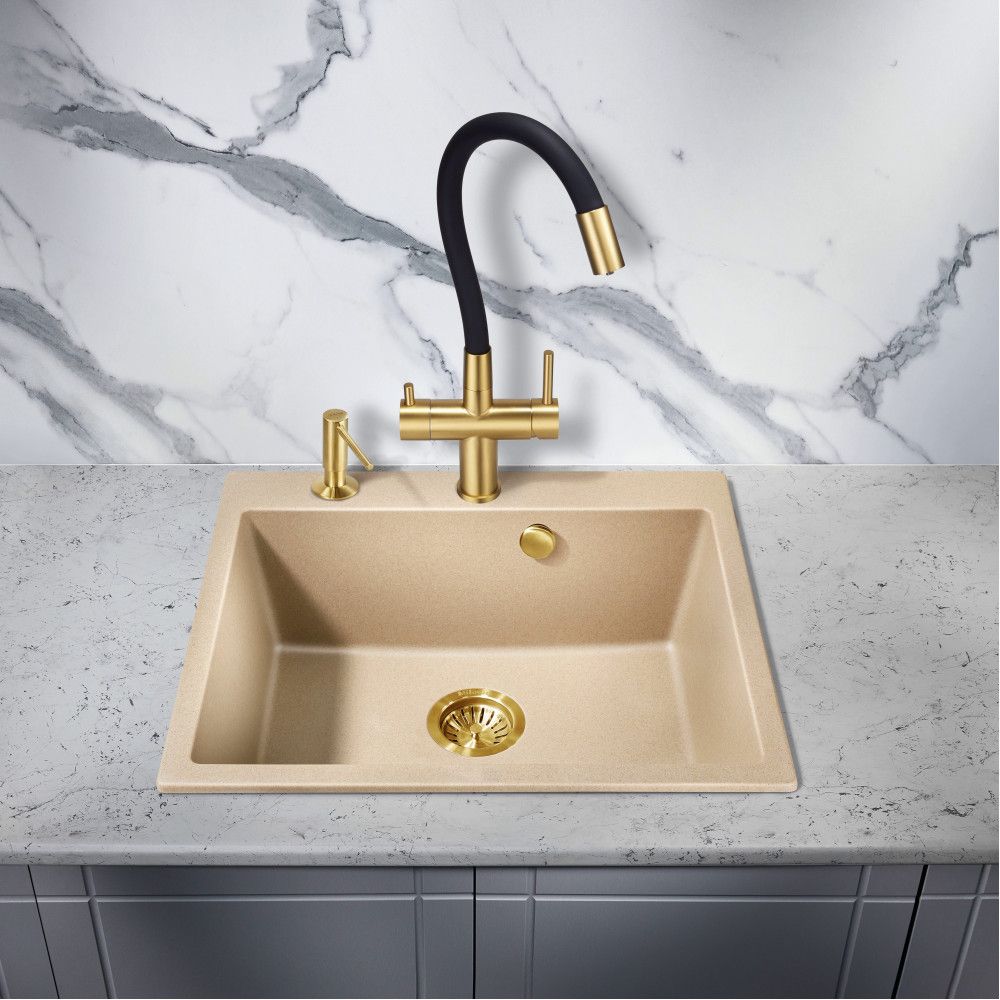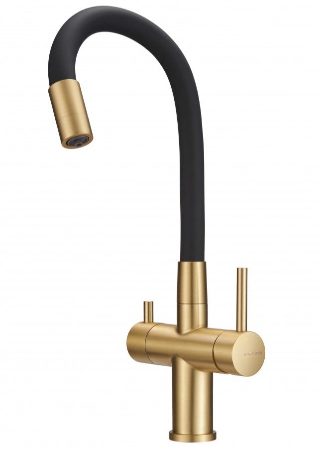 Смеситель для кухни Milacio Ultra MCU.560.GDB под фильтр с краном для питьевой воды и гибким изливом золото/чёрный купить